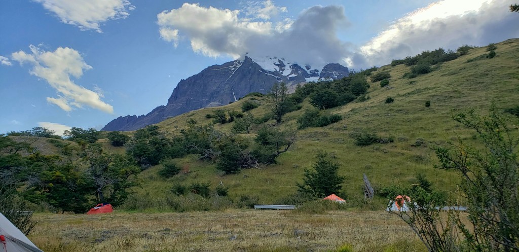 The most expensive option is to stay at the refugio (basically a hostel with bunk beds) and have all your meals prepared for you by the refugio staff. These folks only have to carry their clothes, lunches, and essentials while hiking. The middle price option is to rent a tent that the refugio sets up for you and you just leave it in the morning. The cheapest is carrying your own tent, setting it up every night, cooking your own food you brought over the stove you brought and then breaking down the tent every morning and carrying it with you to the next campsite. Yup.