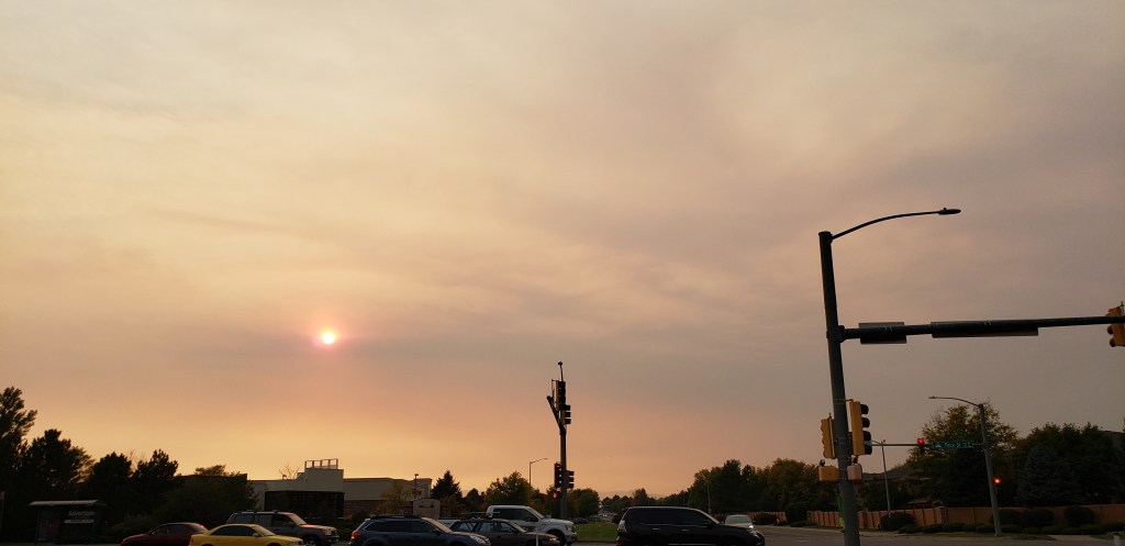 ‘Welcome home!’ we thought as we crossed the border into Colorado from Cheyenne, Wyoming. As we got closer though, it didn’t look like home. Smoke from the two huge wildfires that were burning in the mountains to the west had turned Fort Collins into something out of a nightmare. We couldn’t see the mountains, the sun was dark red in the sky, and ash fell everywhere.