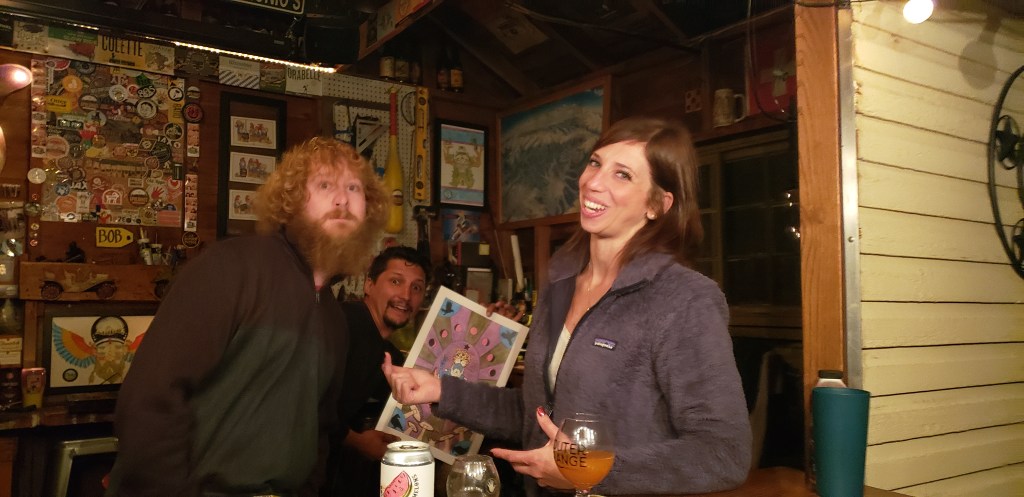 It was a deeply depressing arrival. But we were excited to see our friends and visit some of our favorite places – it seems this year, you just accept the depressing things, cuz there’s a lot of them, and find happiness where you can. We parked in the alley behind our friend Paul’s house. He famously created Apolonio’s Barshed in his backyard, which became a favorite hang out spot and ‘home away from home’ for our Colorado crew. Apolonio’s is complete with a kegerator, projector, Marvel arcade machine, all the collected artworks and knick-knacks and of course an ever growing amount of knomes that you’ll find tucked away on every shelf, nook, and cranny. Hi Natalie & Luke! We we also lucky to spend some time with our friends Drew & Sarah at Odell and Matt & Kimi at Equinox – just being able to talk, laugh, reminisce, vent about the year, and share craft beer with great friends….oh, man, that’s where it’s at 🙂 Hoppy purpose in its essence.