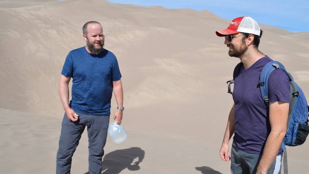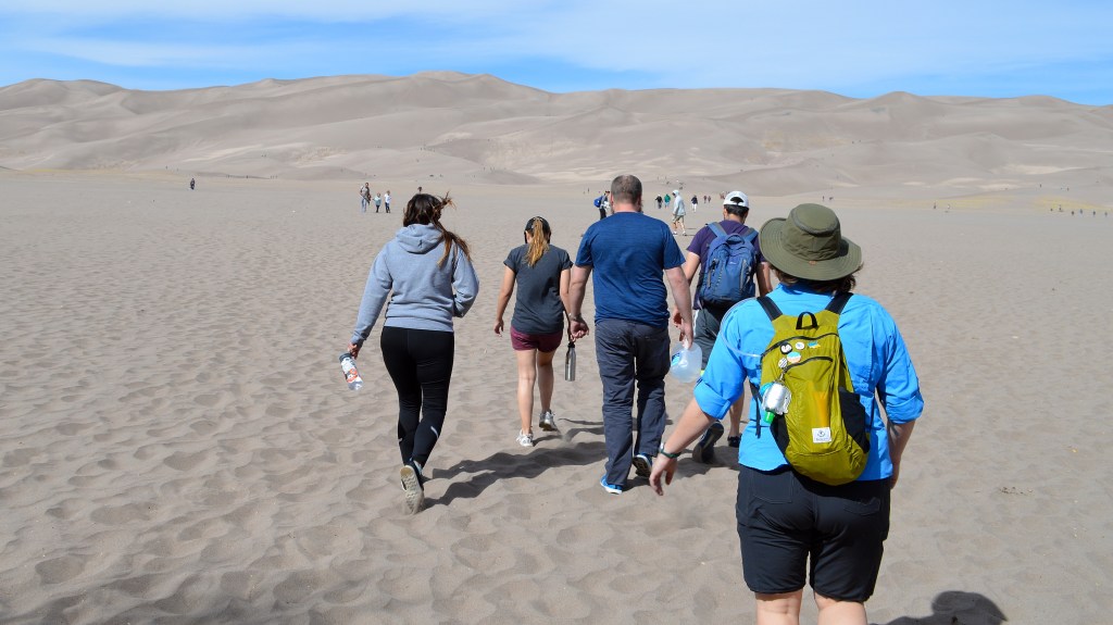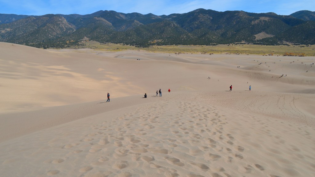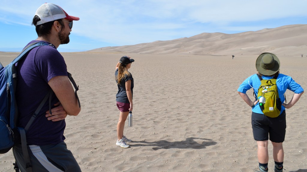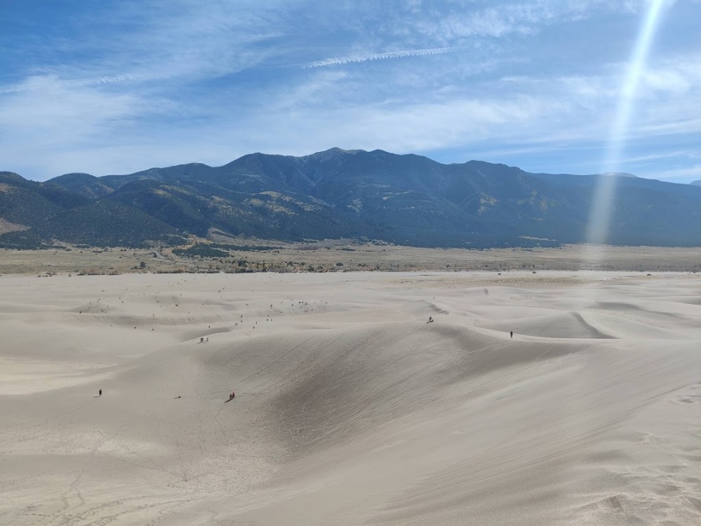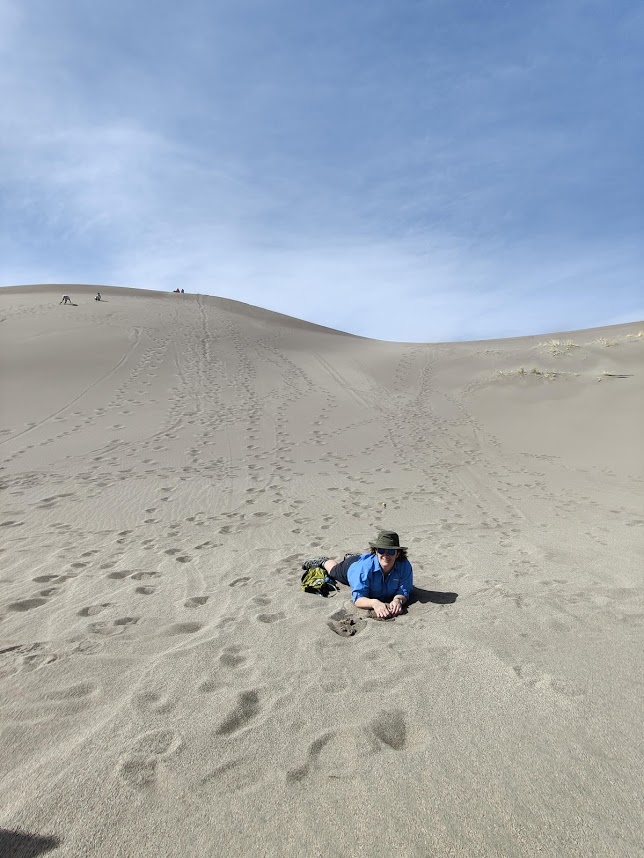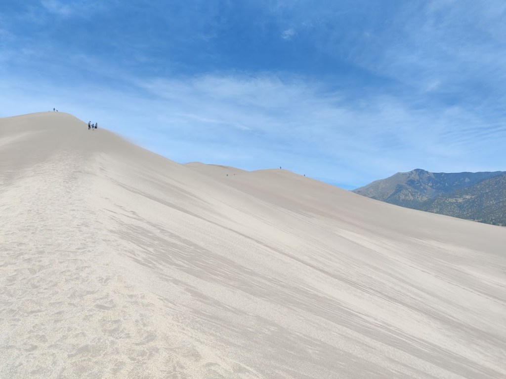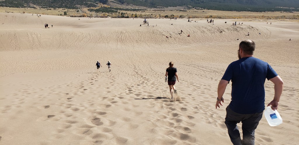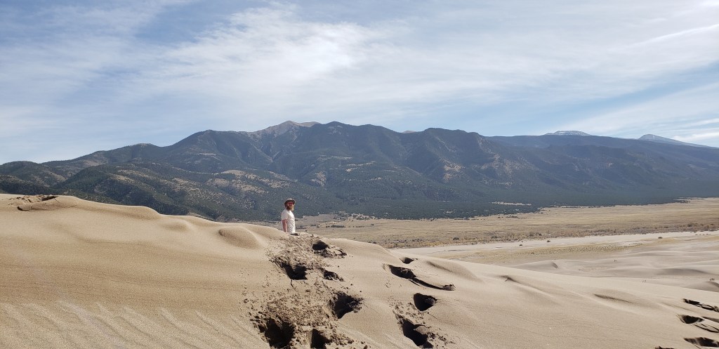 Our first stop was Blanca where we reserved a campsite just south of Great Sand Dunes National Park. We met our friends who lived in the area the next day for a hike to the top of the dunes! It was awesome, but we definitely didn’t make it to the top of the highest dune. It was SUPER windy and the higher we climbed, the more we all just ate sand. Also: Hiking sand dunes is way harder than normal hiking because your feet don’t stop on the firm ground. They sink. You take two steps, you sink back one. The next day, our calves, shins, and hip flexors were all sore as hell.