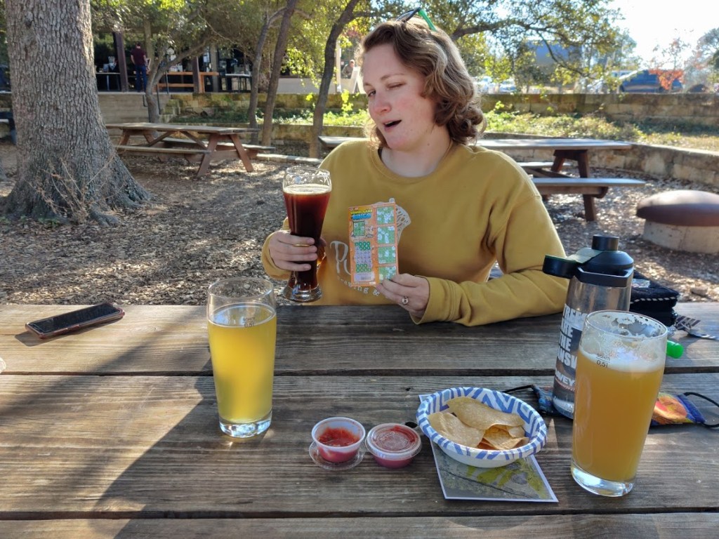 We spent a couple weeks exploring the Hill Country before looping back to Austin for a last couple of days (TX Hill Country photos and stories in a separate blog post – stay tuned). Here a few pics from our last few days brewery hopping in Austin where we were able to sit out on patios. Played some disc golf at Live Oak Brewing – great Hefeweizen, fantastic American Barleywine called Old Treehugger. **Note for any Star Wars fans reading this: Be sure to check out the disc golf sign in the picture below showing where the mandatory disc throw zone is. Mandatory is often abbreviated in disc golf as a ‘mando.’